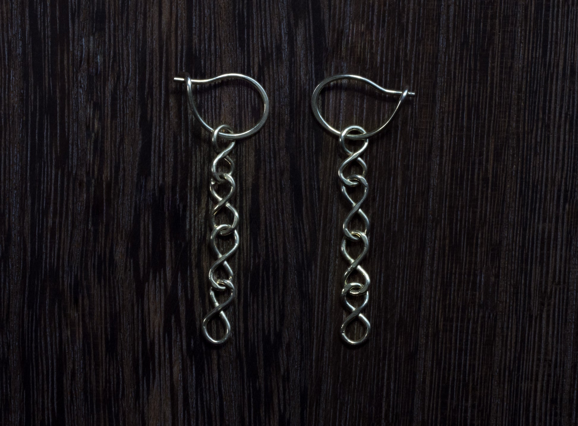 Much like the Everyday Tiny Hoops by themselves, these little guys are simple, sublet, and can be worn with anything. The addition of the handmade infinity chain adds a slightly edgier design element, and is real nice to play with if you have a tendency to figdet. A little trick is to put them in with the pointy side facing out. This keeps them from poking you while you sleep, because yes, I leave these in for months without taking them out.